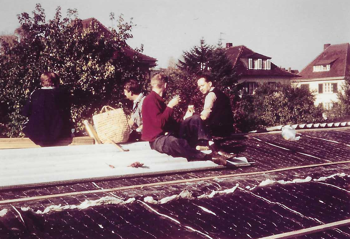 Dachabdeckung zusammen mit Verwandten und Freunden
